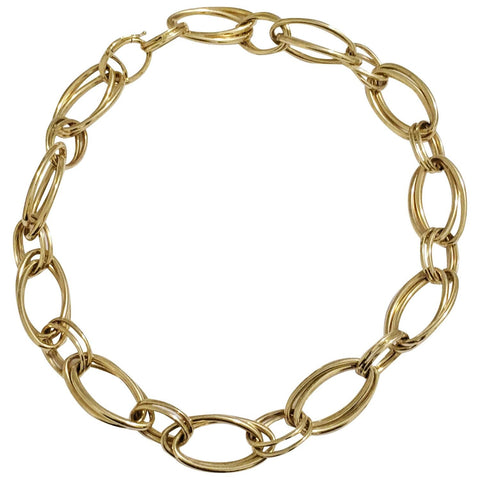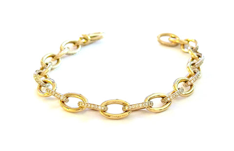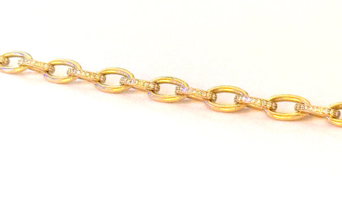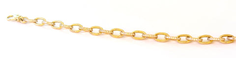 18kt Yellow Gold oval Link Bracelet with alternating gold and diamond edged links finished at 17" with a Lobster closure.