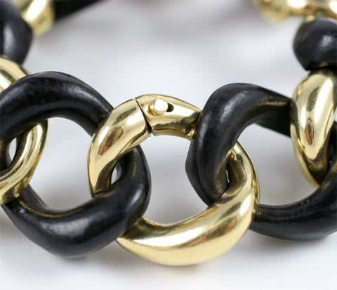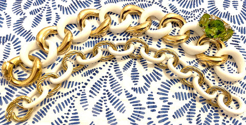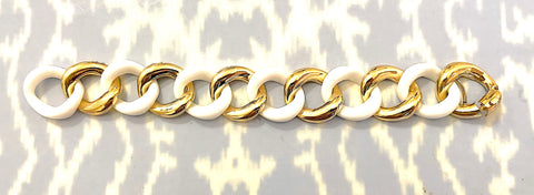18kt Yellow Gold Bracelet with Alternating White Jade links is an elegant statement piece.