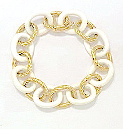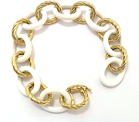 Elegant Alternating Yellow Gold Twist and White Jade Link Bracelet