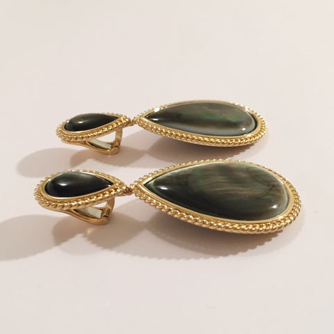 Pear Shaped Abalone Mother-of-Pearl Gold Drop Earrings with Rope Twist