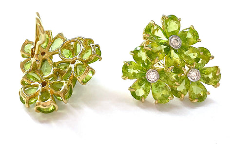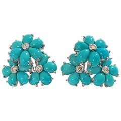 Turquoise Flower Diamonds Cluster Earrings