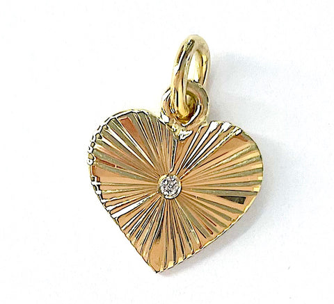 18kt Yellow Gold Paper fluted Heart Pendant with Diamond center.