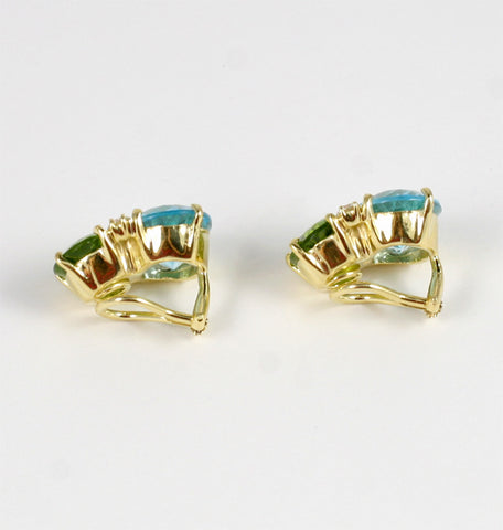 Large 18kt yellow gold GUM DROP™ earrings with peridot (approximately 5 cts each), blue topaz (approximately 12 cts each), and 4 diamonds weighing 0.60 cts.