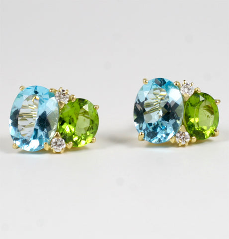Large GUM DROP™ Earrings with Peridot and Blue Topaz and Diamonds