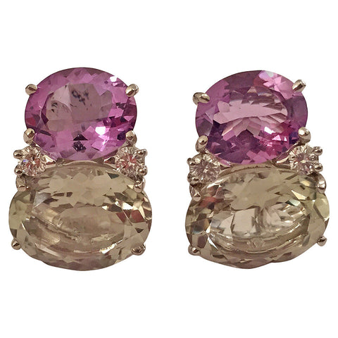 Large GUM DROP™ Earrings with Pale Purple and Green Amethyst and Diamonds