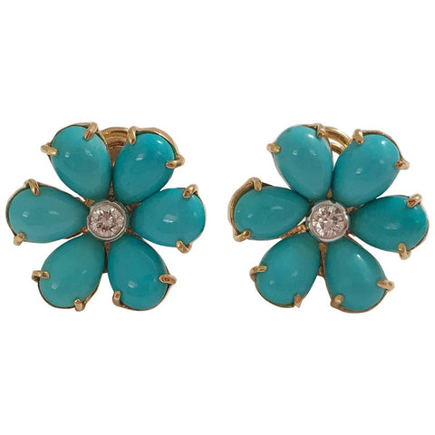 The Top oval Iolite is approximately 5 cts each and the Cabochon Turquoise is approximately 12 cts each, and 4 diamonds weighing approximately 0.60cts