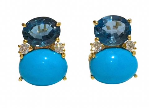 Large GUM DROP™ Earrings with Iolite and Cabochon Turquoise and Diamonds