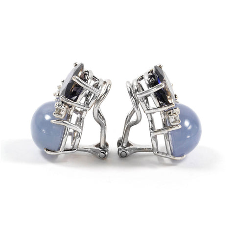 Large GUM DROP™ Earrings with Iolite and Cabochon Chalcedony and Diamonds