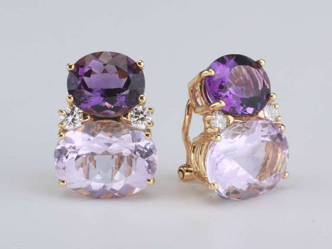 Large GUM DROP™ Earrings with Dark Amethyst and Pale Amethyst and Diamonds