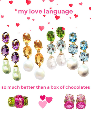 The GUM DROP™ Collection is available in 4 sizes and can be made in Yellow Gold or White Gold in any combination of stone colors. Please contact us with any inquiries you may have.