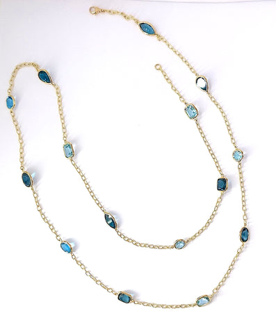 Elegant Multi Color Blue Topaz Necklace on twisted Link chain