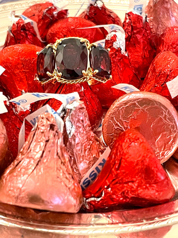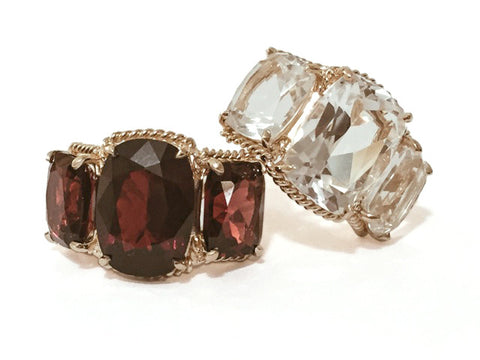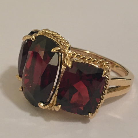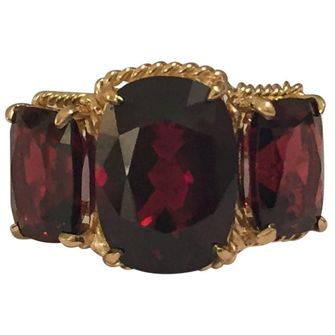 Elegant Three Stone Garnet Ring with Gold Rope Twist Border