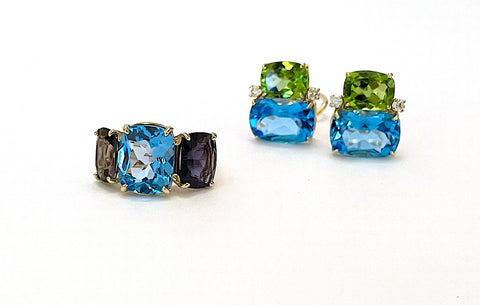 The ring can be made in any color stone combination you would like - example Citrine center with Amethyst side stones.
