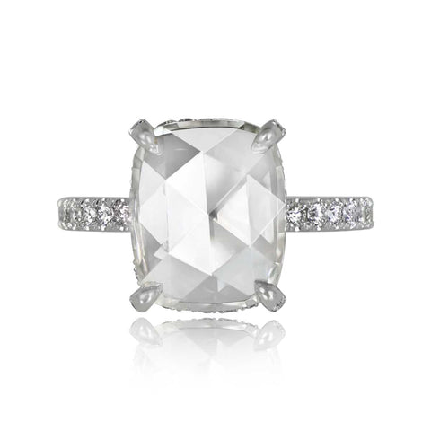 The measurements of the antique cushion cut diamond are approximately 11.11mmx 10.46mm x 5.88mm.