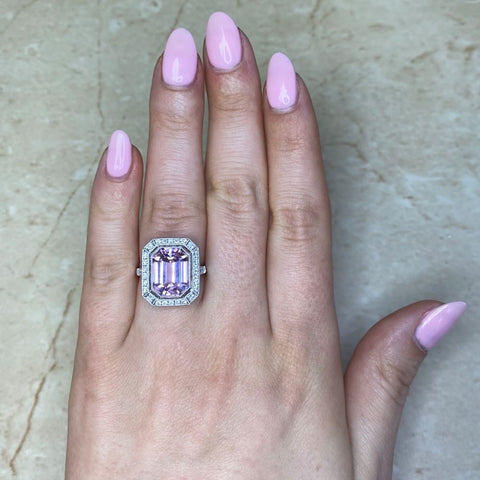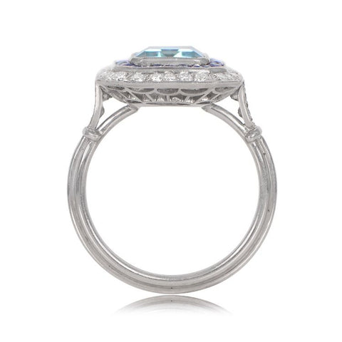 Platinum Cushion Cut Diamond and Sapphire Halo set Ring